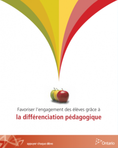 Pour plus d’informations et une vision complémentaire, nous vous invitons à consulter ce guide produit par le Ministère de l’éducation en Ontario en collaboration avec l’Association des enseignantes et des enseignants de l’Ontario, qui présente une réflexion, une méthode et des exemples de différenciation pédagogique en classe.