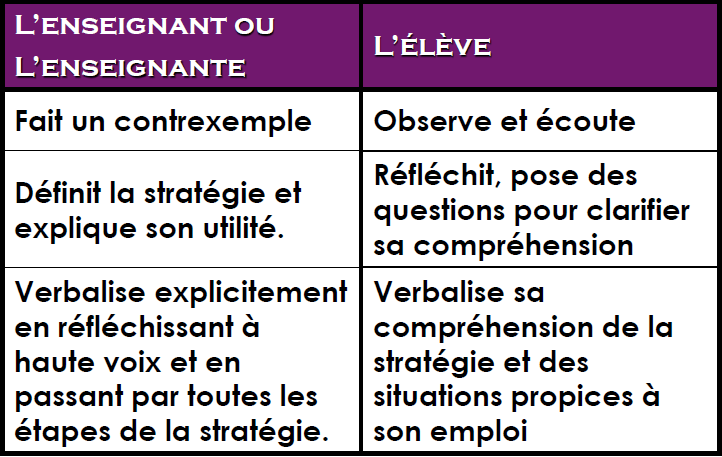 - Présenter la stratégie enseignée.
